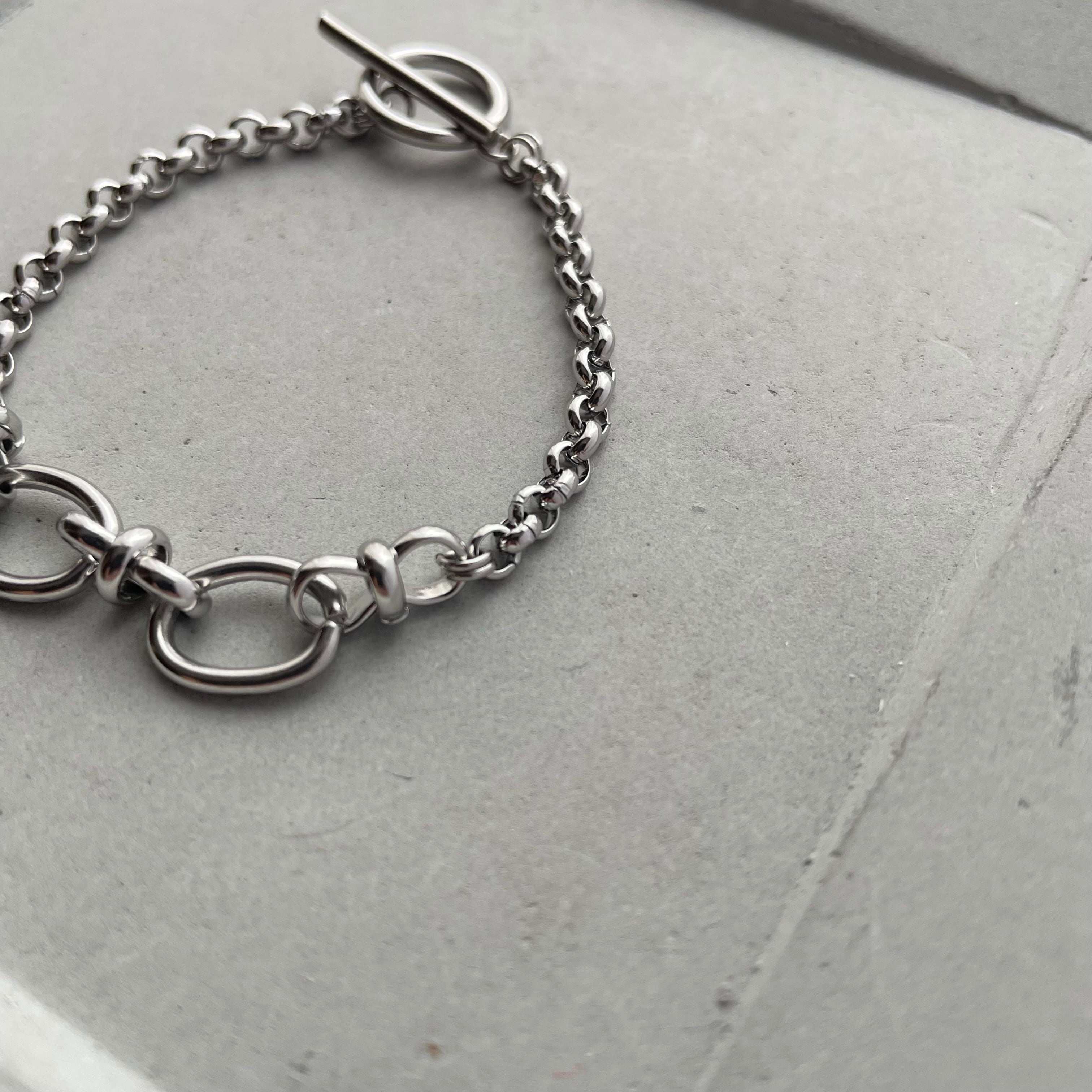 オーバルと小豆チェーンを組み合わせたミックスデザイン。動きのあるリズム感で、普段のスタイルにアクセントを加えます。