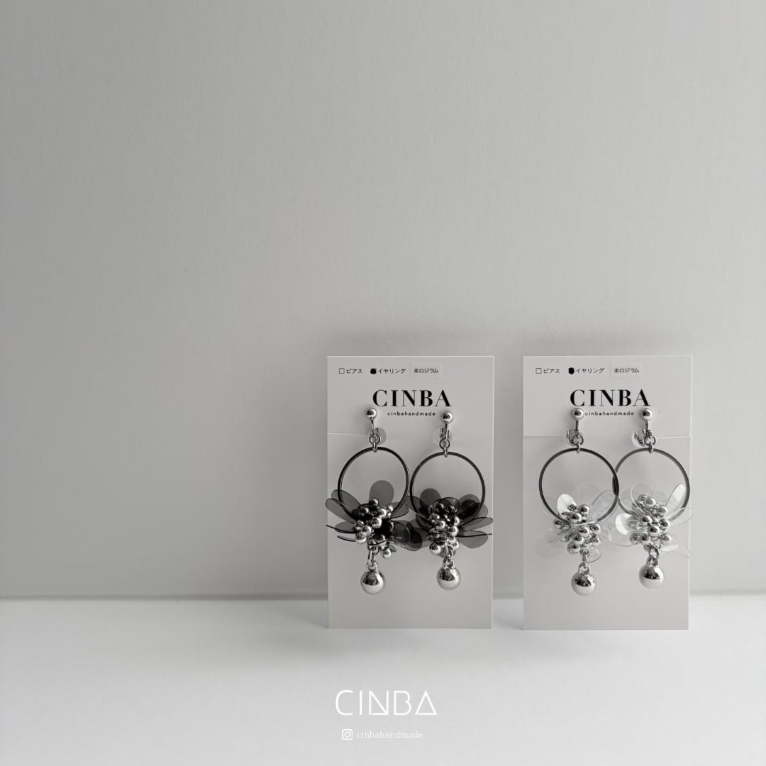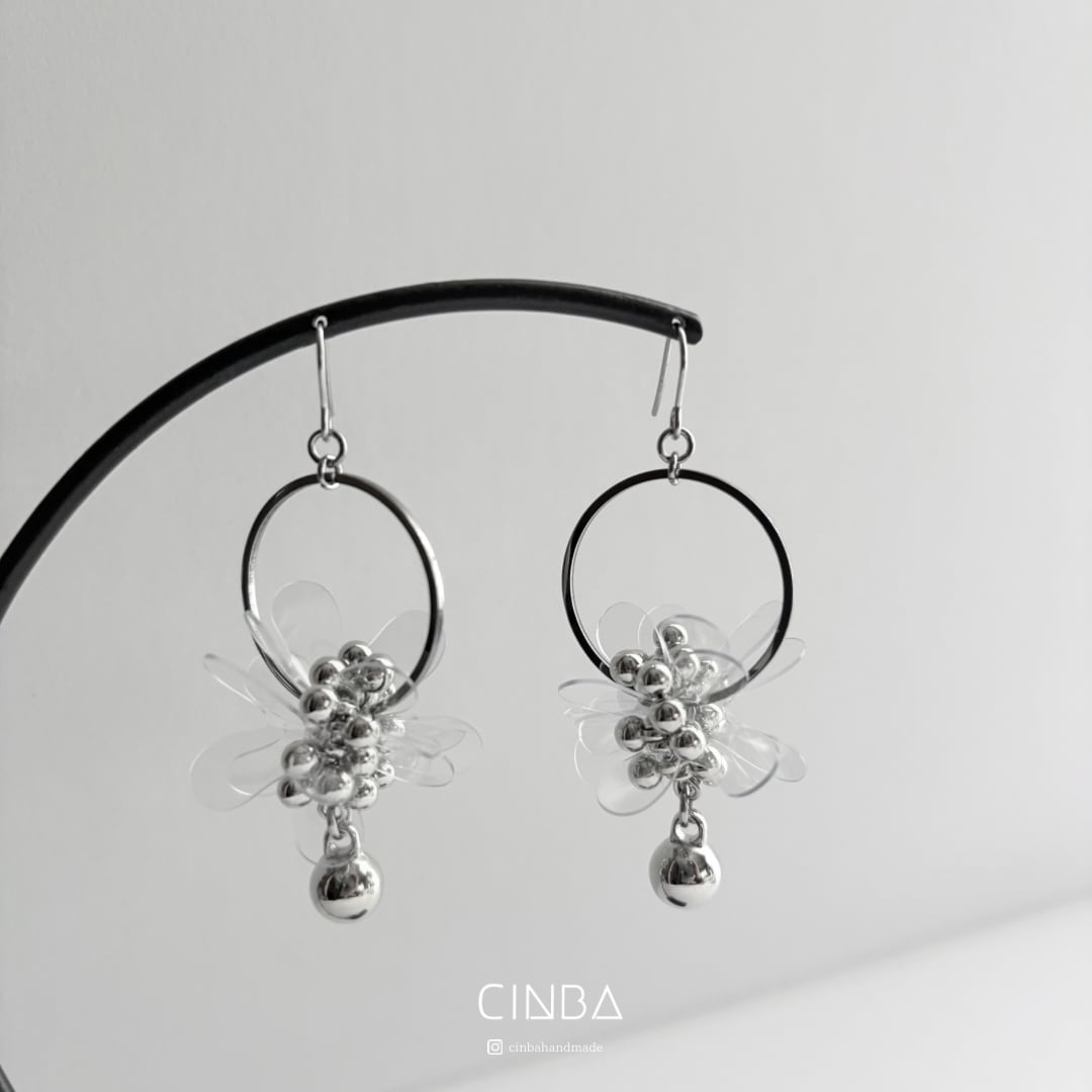 花びらのように重なるPVCパーツと シルバーフープを組み合わせたデザイン。
